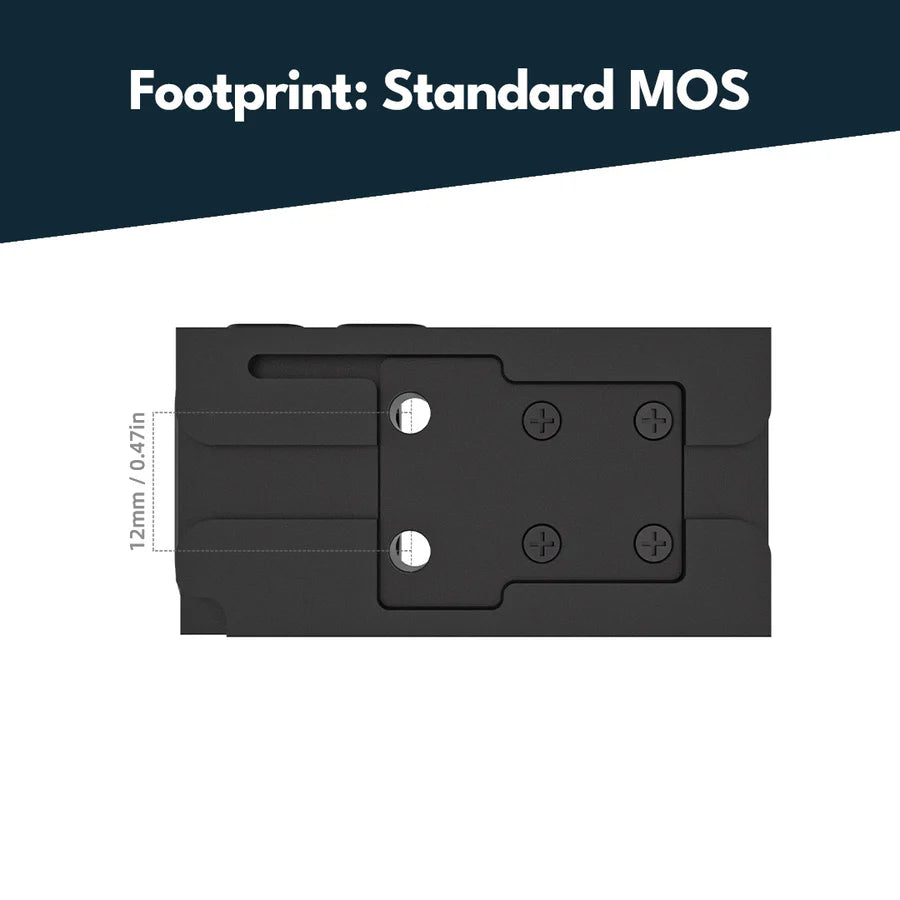 Questo red dot utilizza l’impronta Glock gen 5 MOS. Si adatta ai modelli Glock MOS gen 5 senza necessità di alcuna piastra adattatrice.